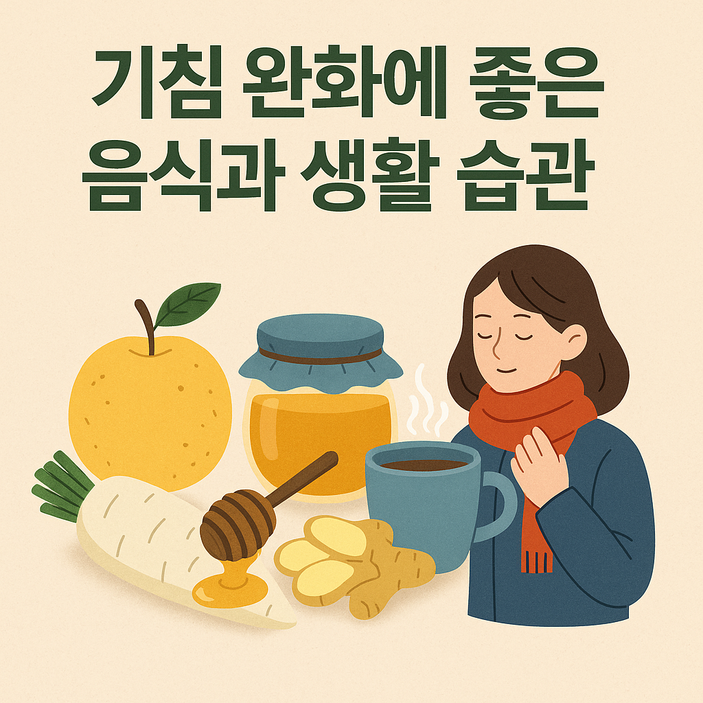 꿀·배·무·생강 같은 전통적인 기침 완화 음식과 함께 습도 유지, 수분 섭취, 알레르겐 차단을 병행하면 회복 속도를 높일 수 있습니다.