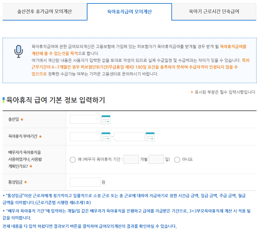 5) 육아휴직 모의계산