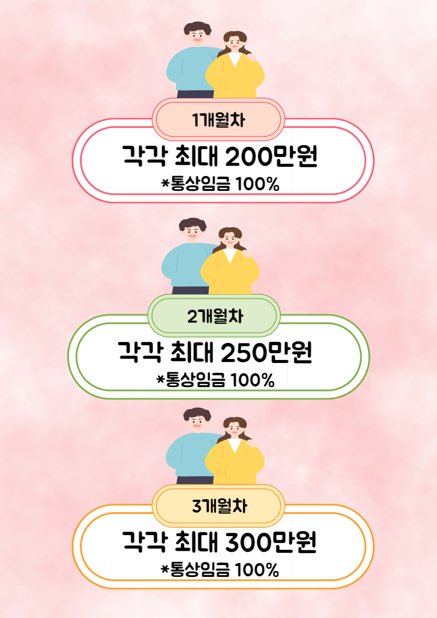 母 3개월 + 父 3개월 : 각각 상한 월 300만원 지원(통상임금의 100%)